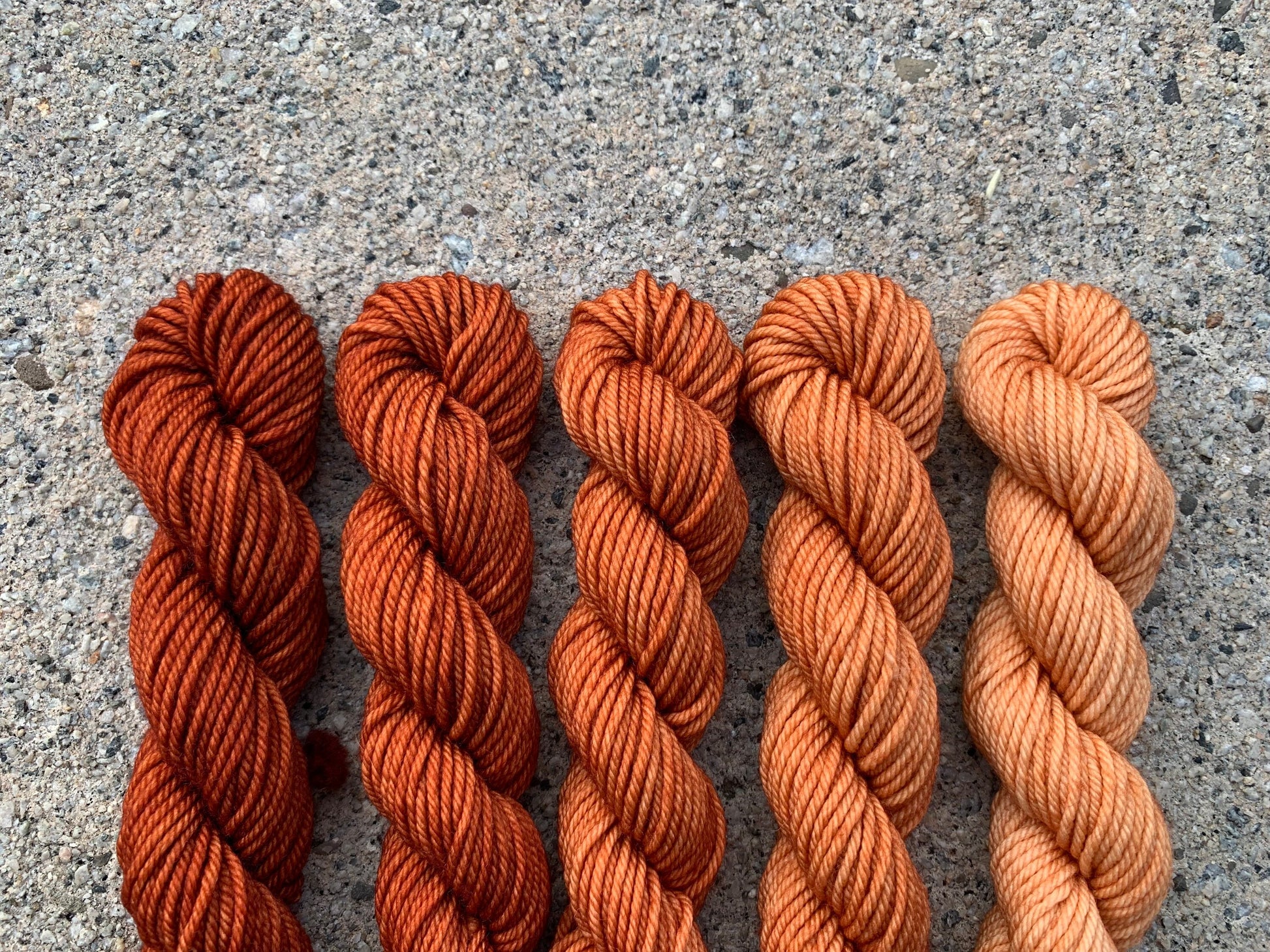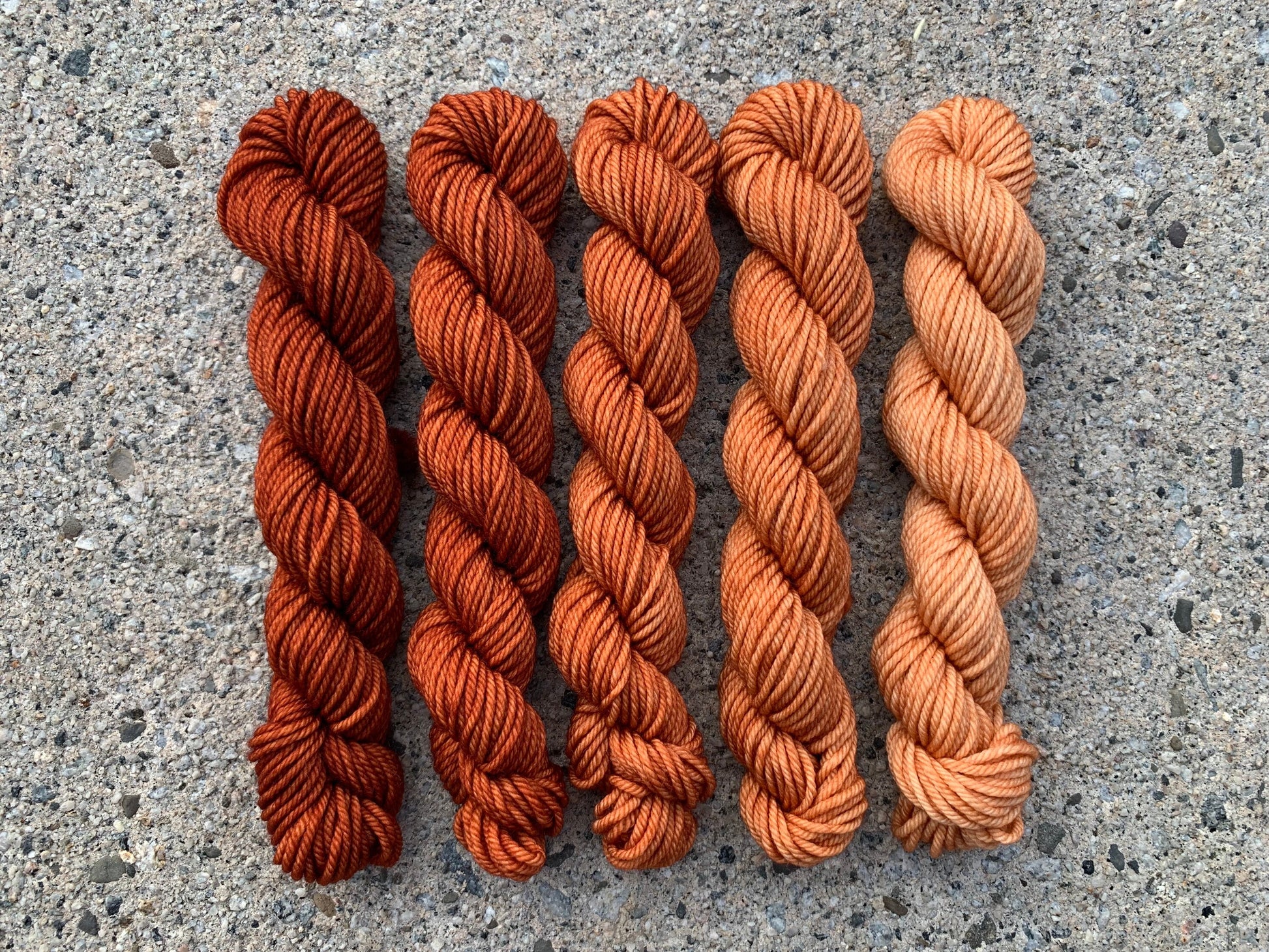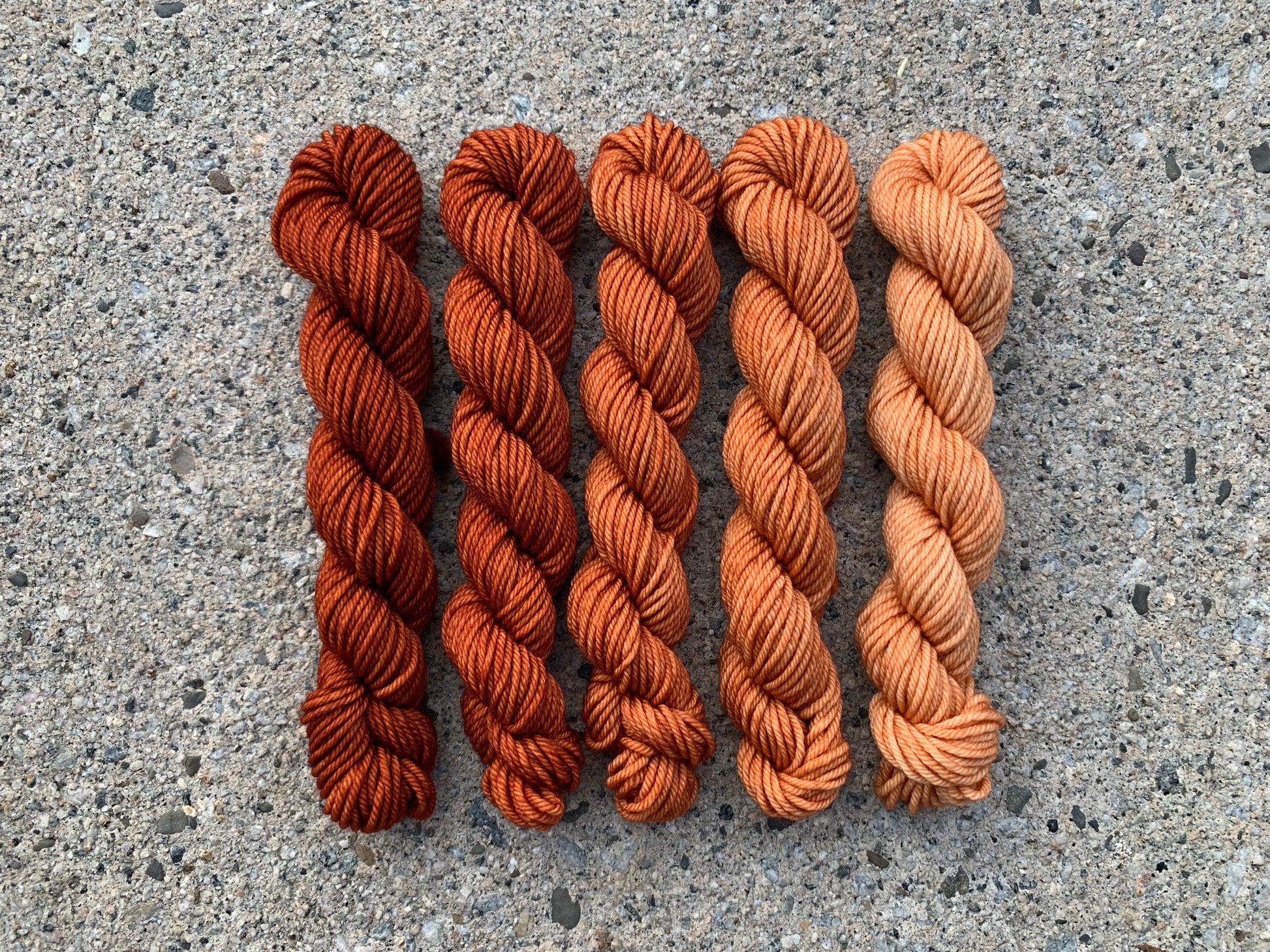 This set includes: five 20g mini skeins in a gradient of beautiful, Terracotta.